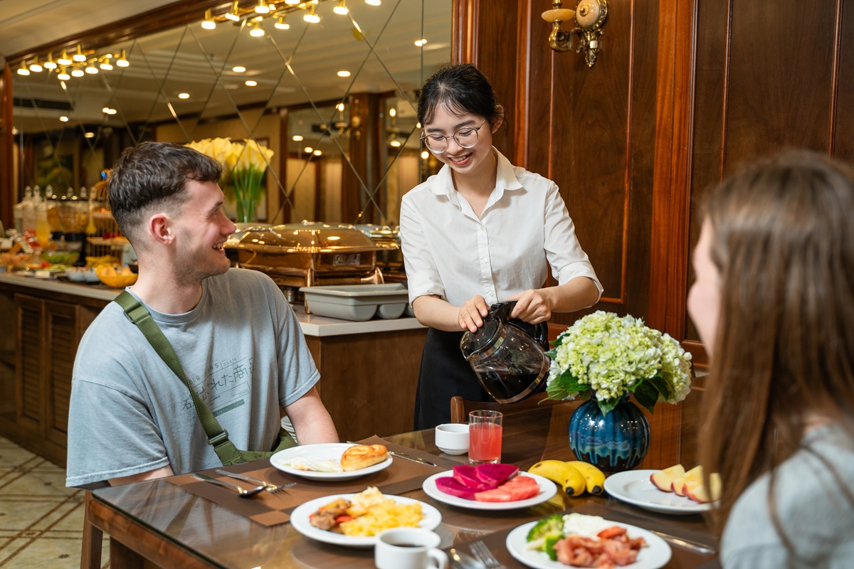 TheWest Restaurant offers a classy and contemporary vibe for a tasty lunch or dinner. Enjoy the elegant ambiance with the touch of enchanting décor. Embark on an adventure of intangible cultural heritage with the exotic flavors of Vietnam’s bustling cuisine, with “pho” noodle soup and '' Bun cha" with house special grilled beef with lemongrass or traditional ''LA VONG " grilled fish. Savor the International culinary delights with creamy pumpkin soup, house special salmon, and perfect tender Australian rib - eye beef steak with secret sauce. Our menu also features a variety collection of wine and desserts that enhance your flavorful adventure with gorgeous taste.